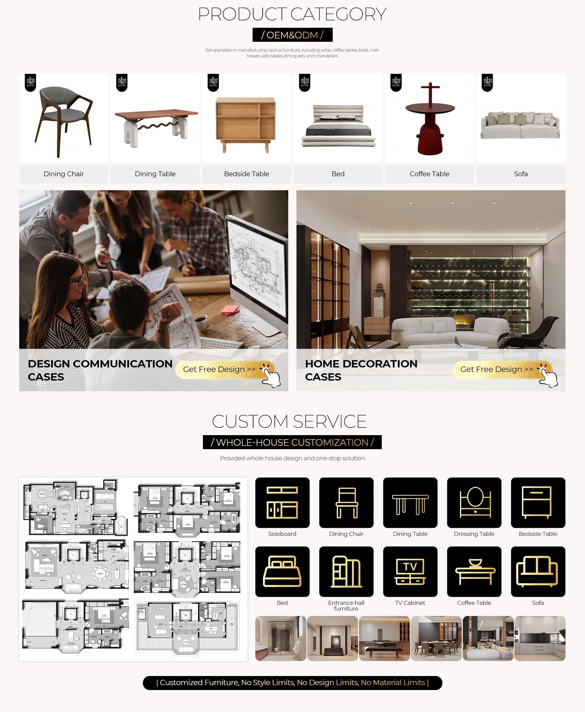 Productos principales:Cama, sofá de salón, mesa de comedor